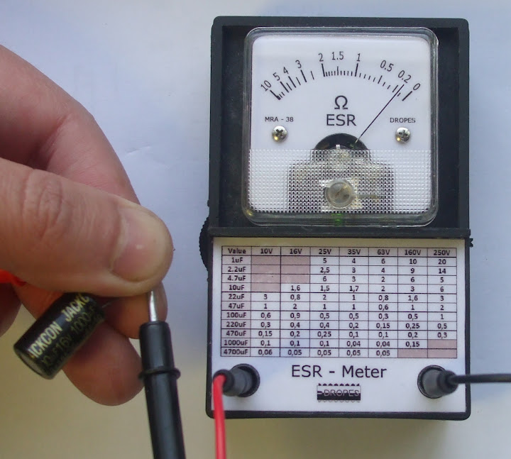 A confirmação de que um eletrolítico está bom ou não, depende principalmente da sua resistência em série, o que é isso, ESR ou Resistência Equivalente em Série é um parâmetro importante em todo condensador, a ESR representa a resistência resultante da combinação dos terminais, conexões internas, placas, dielétrico e eletrólito (no caso de condensadores eletrolíticos):